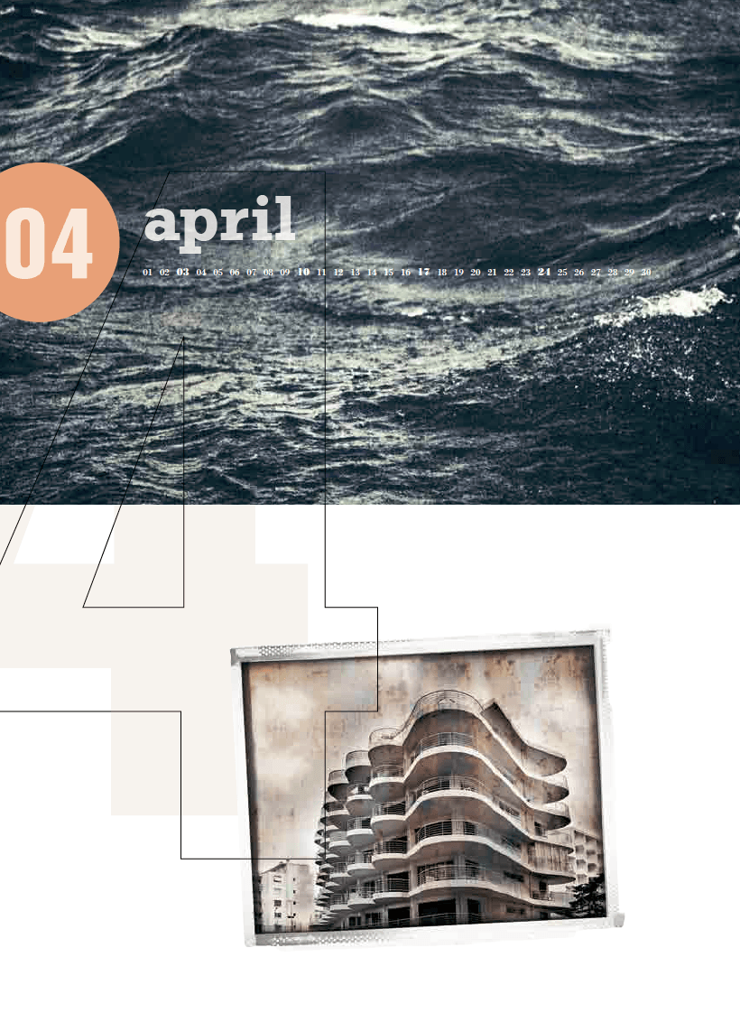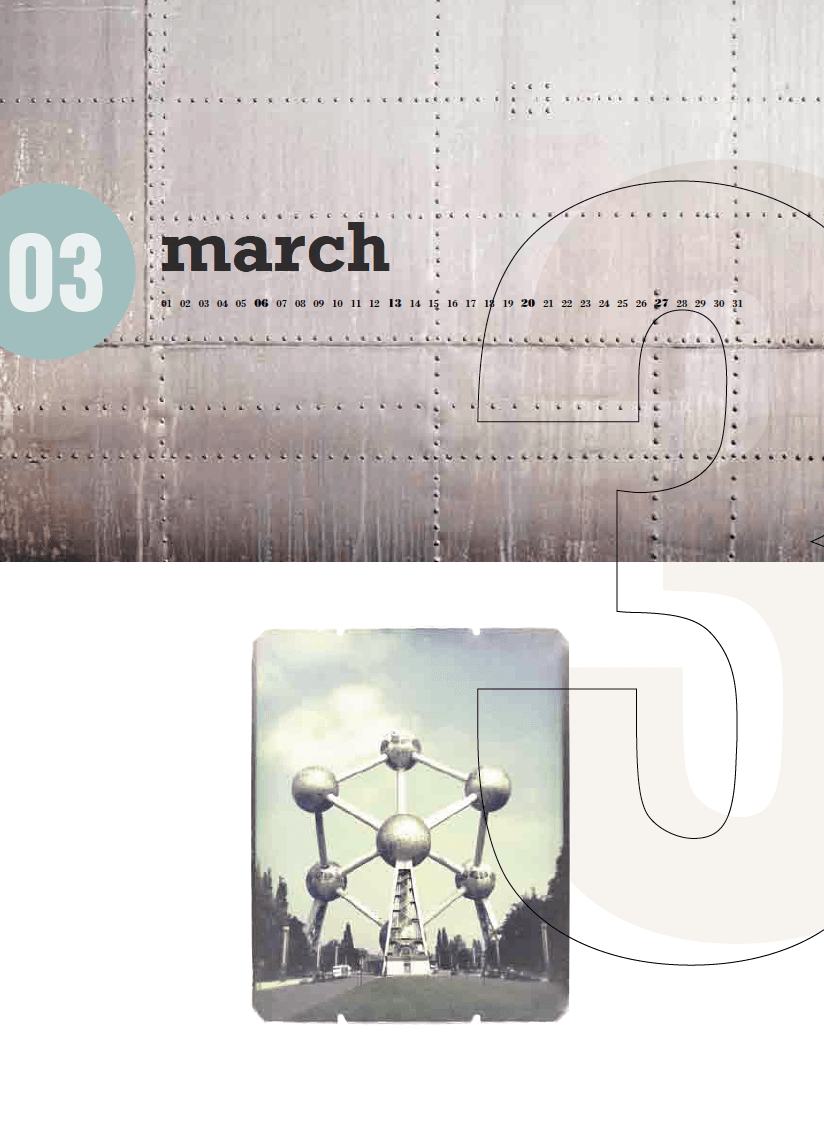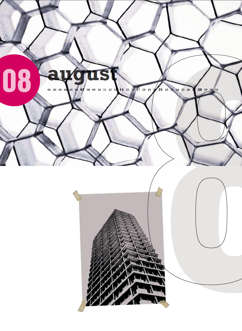 Nicht die reduzierte Abbildung eines Bauwerks stand im Fokus des Kalenders, sondern die Verbindung des Gebäudes mit dem verwendeten Material. Das zur Verfügung stehende Material bestimmt neben der Funktion die Form eines Gebäudes und häufig waren es neuartige Materialien, die Architekten zu kühnen Entwürfen bewegten.