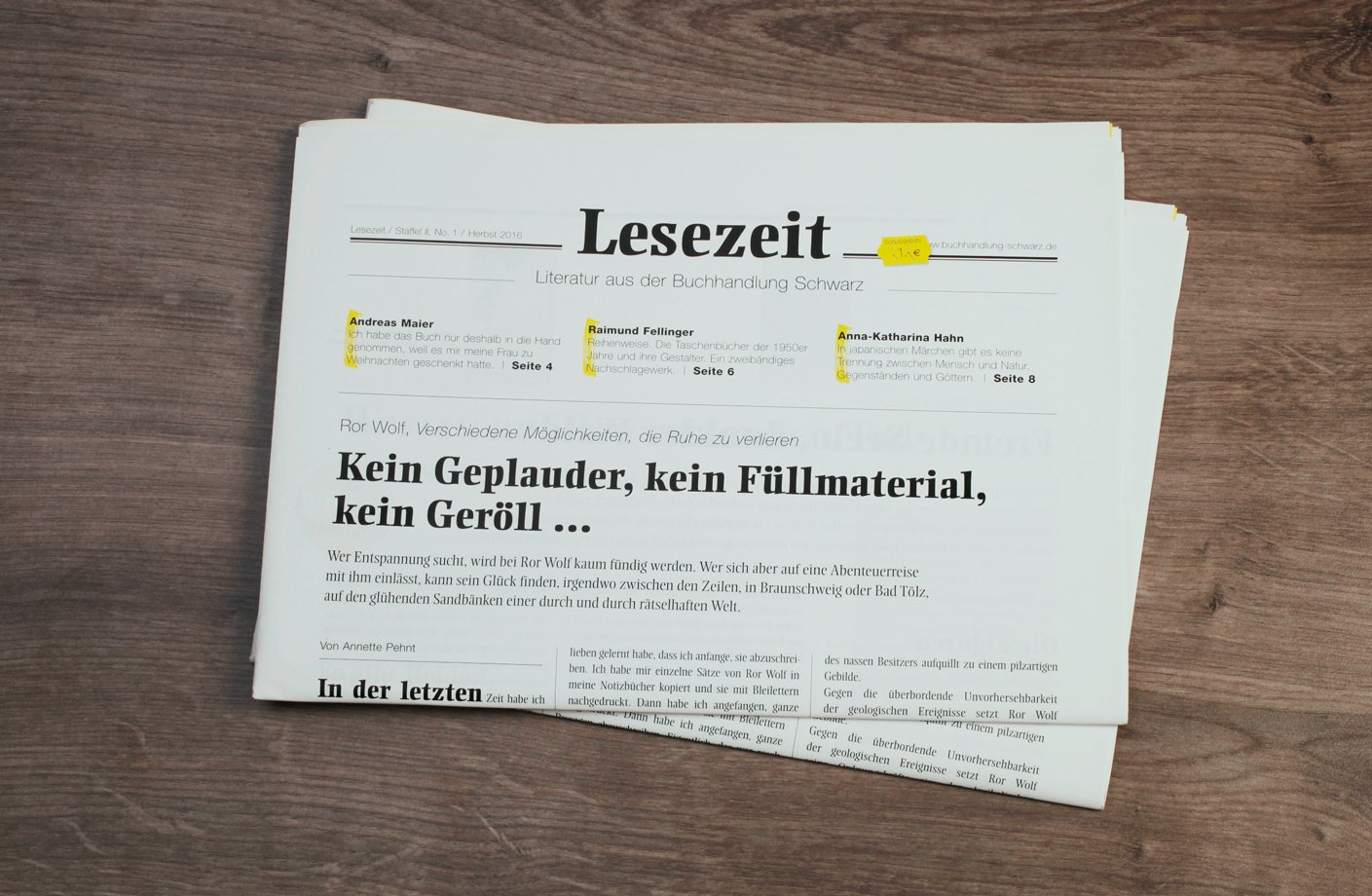 Seit dem ersten Tag vertraut die Buchhandlung Schwarz auf kompetente Unterstützung. Oder anders gesagt: vom Signet über das Corporate Design bis hin zur Kommunikation nach außen hatten wir bei allen Entscheidungen ein Wörtchen mitzureden. Anerkannt und ausgezeichnet mit dem Buchhandlungspreis 2015 in der der Kategorie „hervorragende Buchhandlungen“. Und natürlich von den vielen treuen Kunden der Buchhandlung.